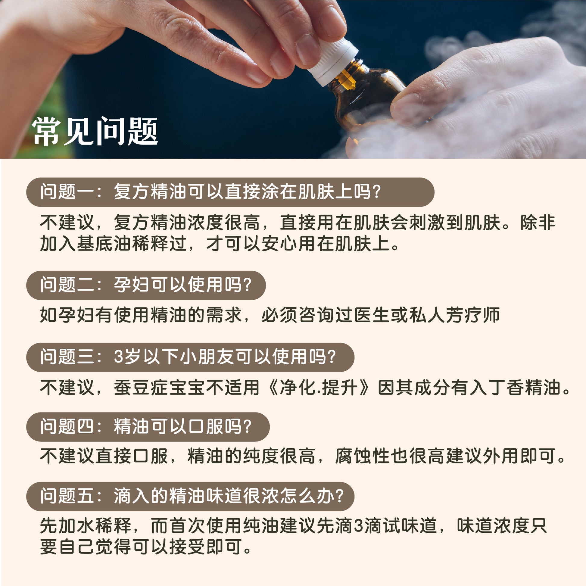 For the first 3 days, use 5–8 drops of Purify Energy Pure Essential Oil in your diffuser with 100ml of water.